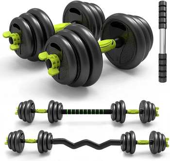 Kit d'haltères verts réglables de 30kg avec haltère tout-en-un multi-usage kit d'haltères verts et Kettlebell